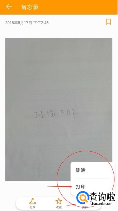 点击右下角更多图标,会出现两个选项“删除”和“打印”。