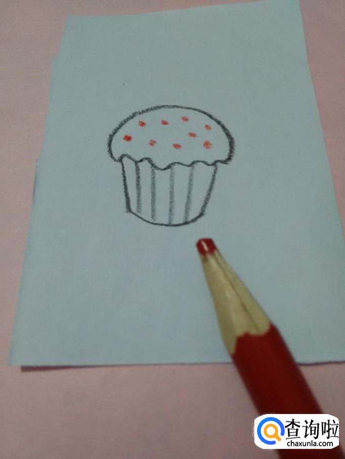 用红笔在蛋糕上面点几个红点,表示蛋糕上的装饰糖粒。