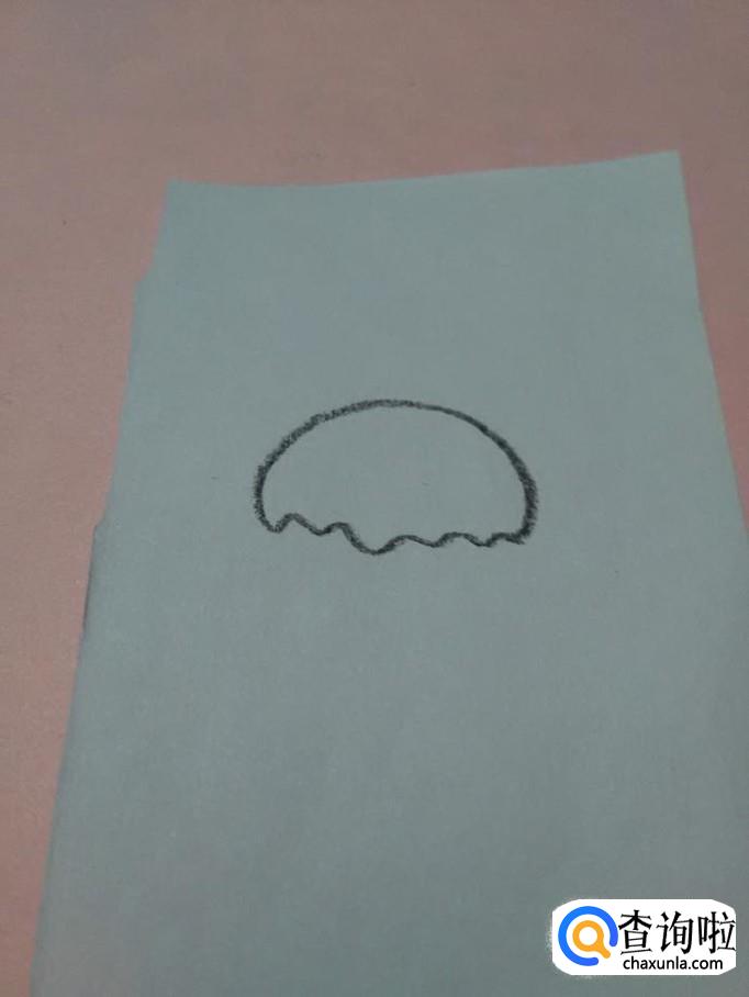 先用黑笔在纸上画一条弧线,表示蛋糕的顶部。