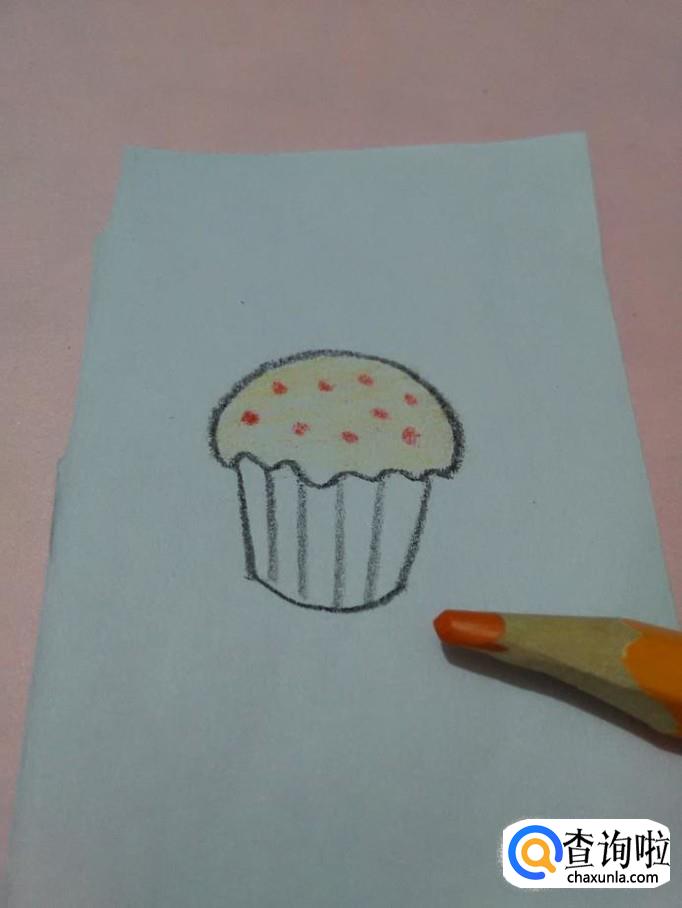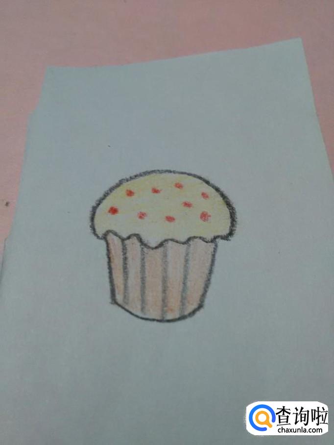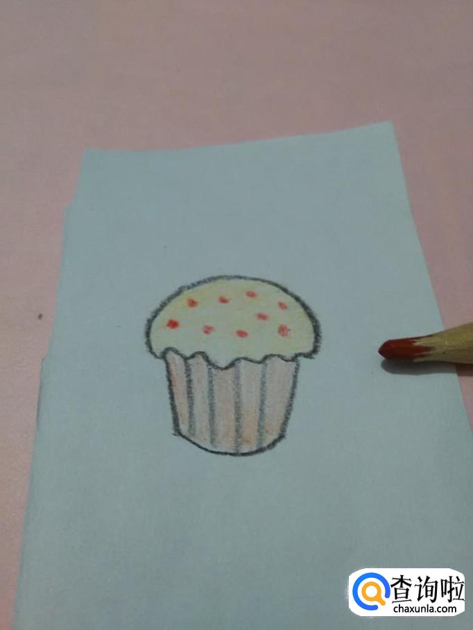 用棕色笔将蛋糕下面的杯托涂成棕色,蛋糕就画完了。