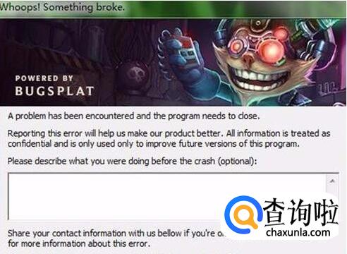 LOL加载界面时闪退whoops,something.broke