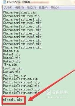 然后用记事本方式打开ClientZips文件,把自制皮肤名字删掉。