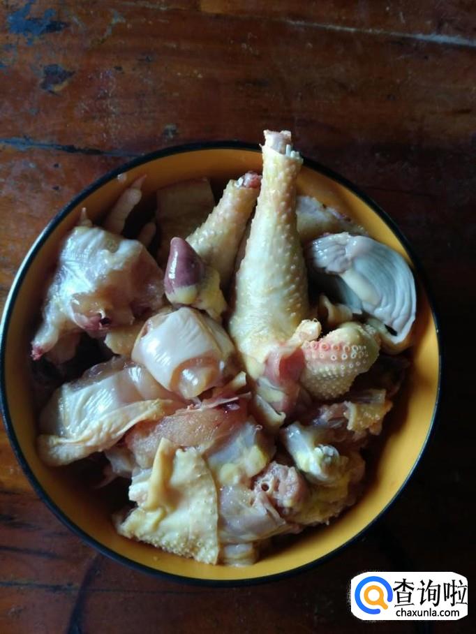 把鸡切好装盘,待用。
