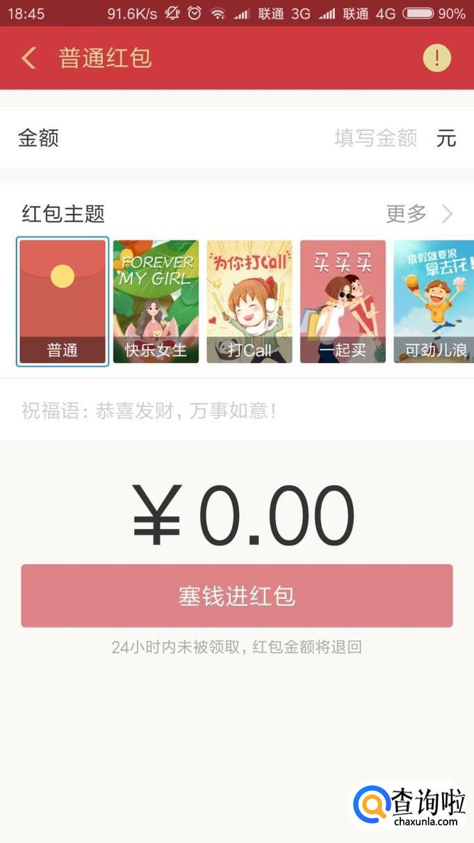 接下来,打开红包发送页面,输入红包金额,并点击“塞钱进红包”选项。