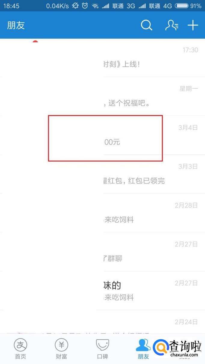 接下来,打开好友列表页面之后,选择要发送红包的好友。