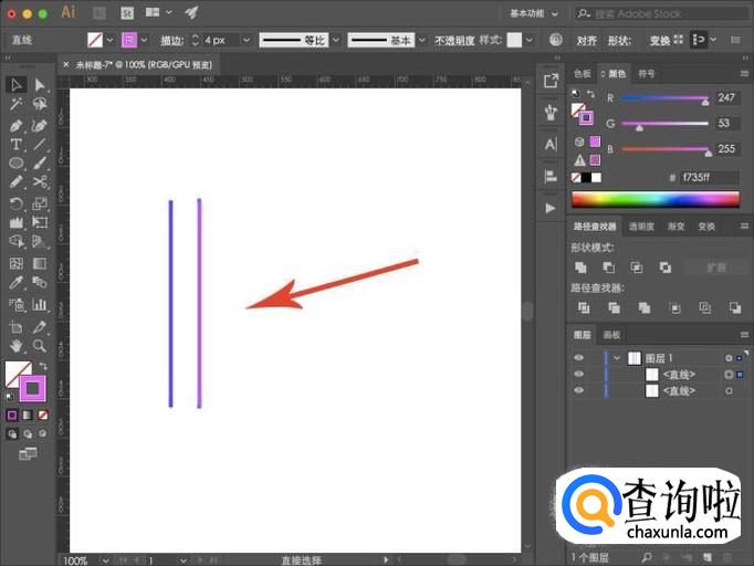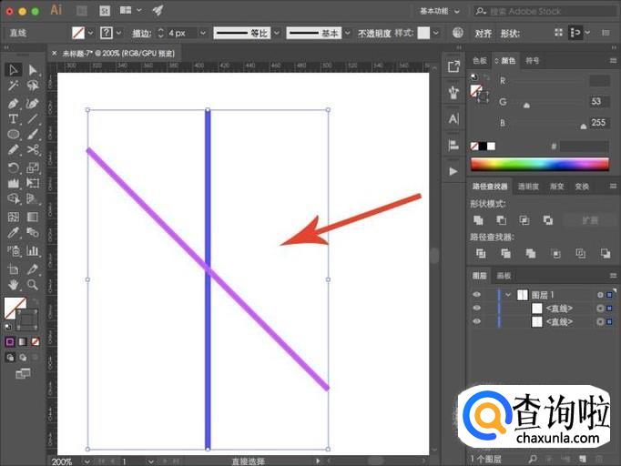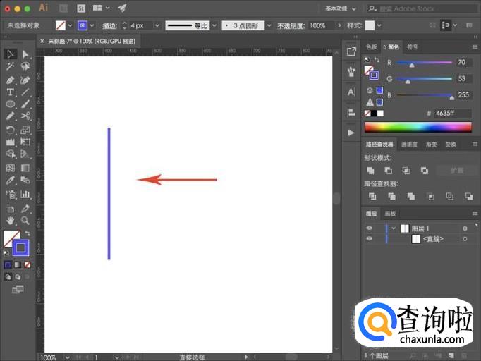 进入AI界面,我们先在工具栏中选择“直线工具”,然后在画板中绘制一根直线。