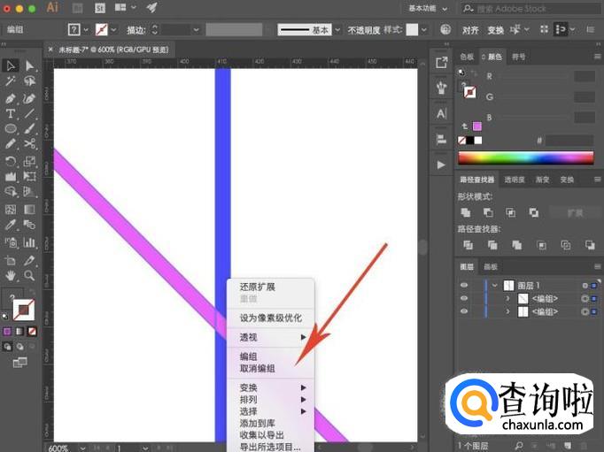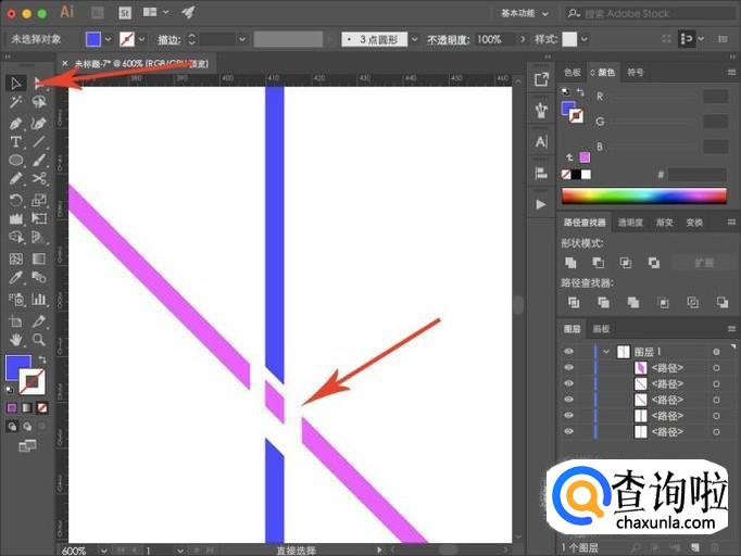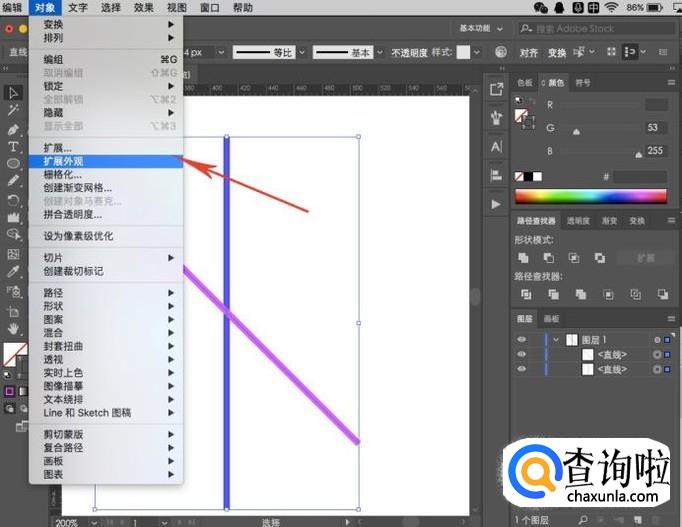 由于我们绘制的是直线,所以需要先转变为形状之后才能进行分割,点击“对象-扩展外观”