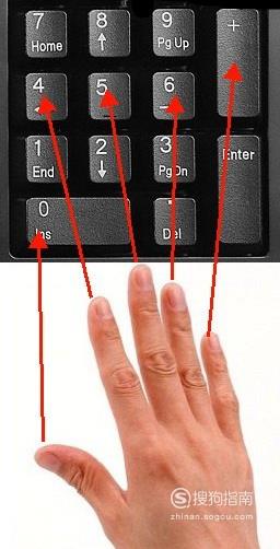 我们在输入数字的时候,也可以快速操作,手指摆放位置如图所示,当练习熟练之后,还可以盲打。