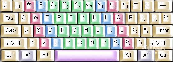 先把键盘上二十六个字母背下来,就像背古诗一样,第一排“QWERT,YUIOP”,第二排“ASDF,GHJKL;”,第三排“ZXCVBNM”,要求一口气背一句,滚瓜烂熟,熟记于心。