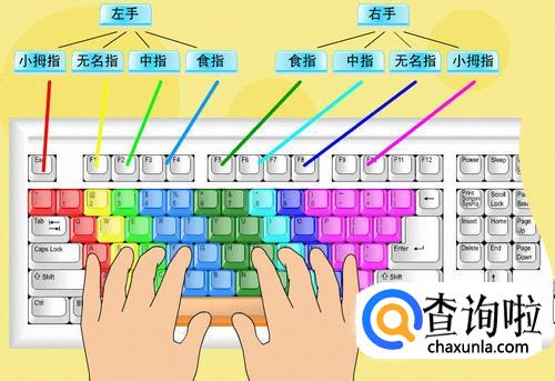 手指排队,左手的食指放在F键上其他三个指头依次往后,拇指侧面轻轻挨在空格键上,手指自然弯曲,手心是空心的;右手食指先放在J键上,然后其他几个指头依次排列,拇指侧面轻轻挨着空格键,手的重量落在手臂上。