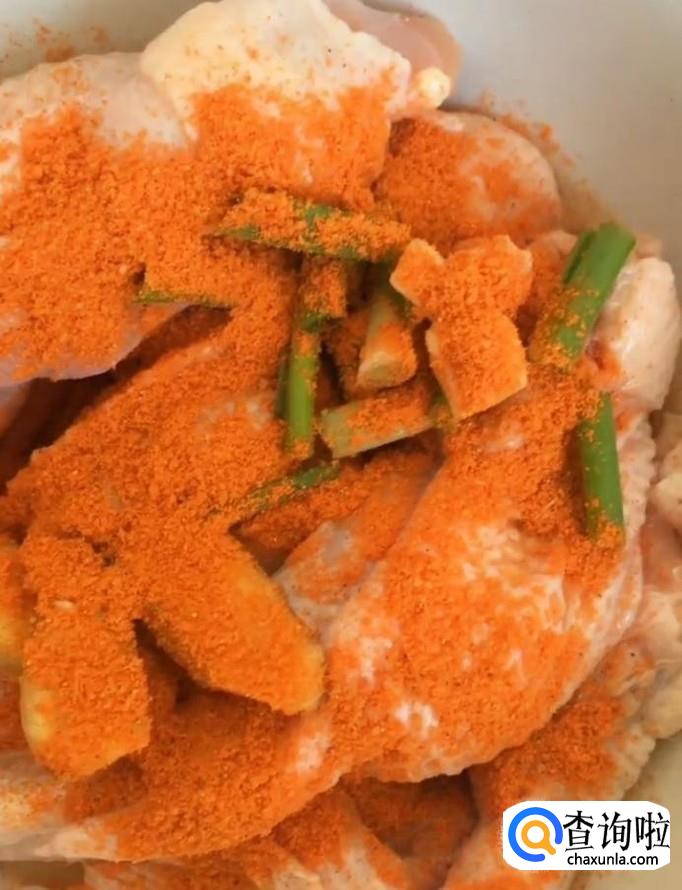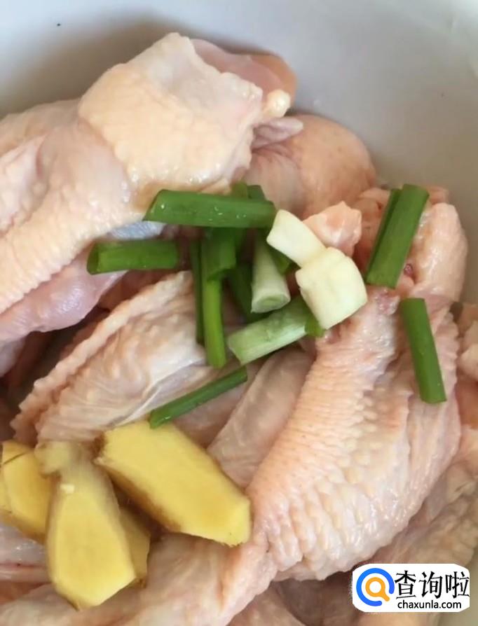 接着我们将处理好的鸡翅放入碗中,加入切好的葱姜段