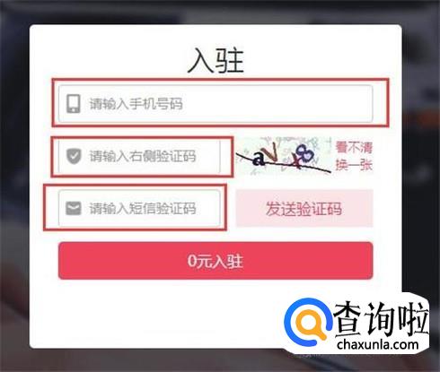 在商家入驻页面,输入手机号、验证码、手机动态验证码,然后点击“0元入驻”