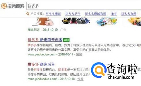 打开搜狗浏览器,在搜索框中输入“拼多多”,然后点击官网进入页面。