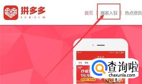 进入拼多多官网后,点击状态栏上方的“商家入驻”