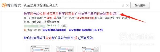 首先我们打开搜狗搜索引擎搜索“淘宝禁用词检测查询工具”后点击标题进入。