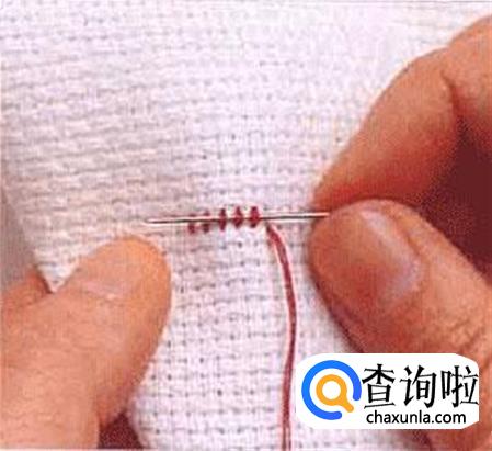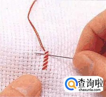 穿针的背面的线会相互平行地排列,不要打结,然后将线穿过平行排列的3到4根线就可以了。