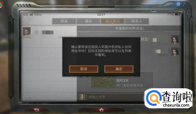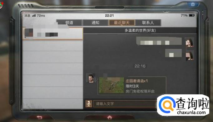 所以在去好友家之前,应该先给好友发信息,让好友发庄园邀请给你,然后在一个小时内领取邀请卡,就可以前往好友家了。