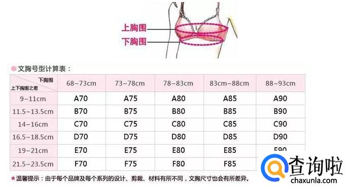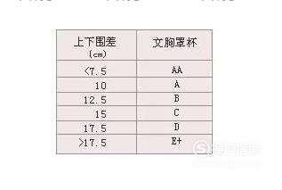 罩杯尺寸=上胸围-下胸围(上胸围与胸下围的差距)