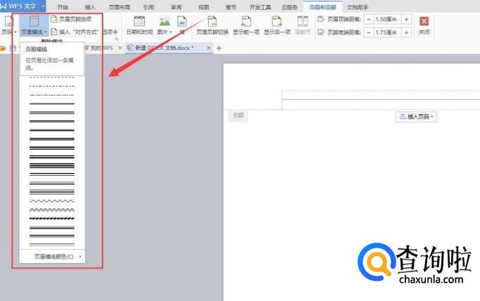 在【页眉横线】可以选择多种不同的页眉横线。