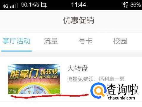 我们每天也可以在优惠促销的掌厅活动里面转动大转盘抽取流量