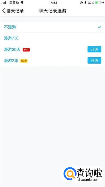 如果你要关闭聊天记录漫游,可以选择不漫游,如下图所示。