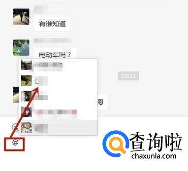 接着输入字符@并选择一个群成员,如下图所示。