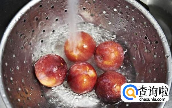 首先我们先把李子洗干净,把尾巴摘下来,用盐把李子搓洗一下控干水备用。
