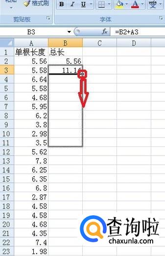 如图所示,如果填充数据较少的话,我们只需要把光标移到图中标记处,然后向下拖动鼠标,到指定的那一行就可以了。放开鼠标,数据也就填充完毕了。