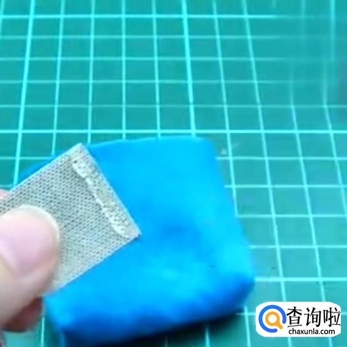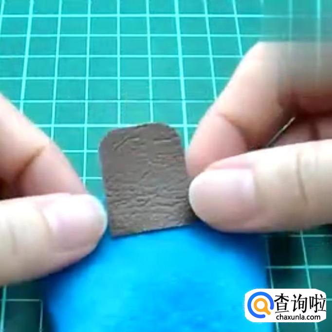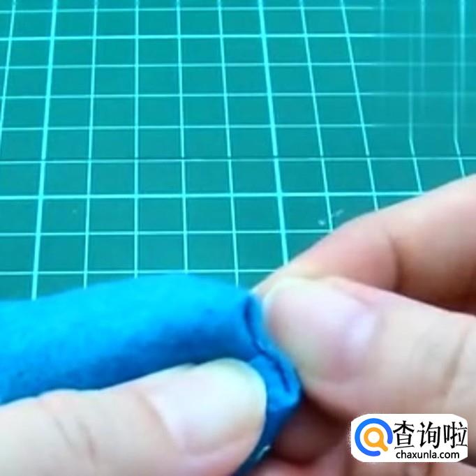 选择一块1x2cm的不织布,1cm的边一边剪成弧形,另一边抹上胶水