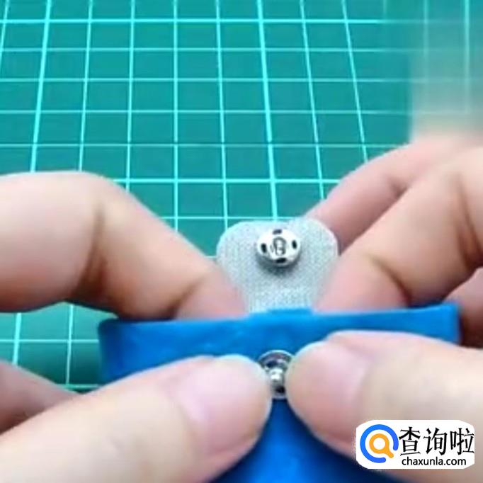 在包包口径和封口上各沾一点胶水,然后将按扣黏在上面,如下图所示,就OK了