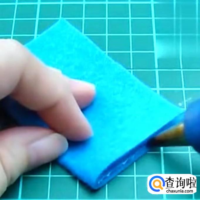 10x5cm的不织布,颜色任选,对折成如下图所示形状,在两边开口出涂上胶水,如下图所示