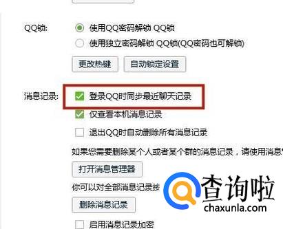 接着点击登录QQ时同步最近聊天记录,如下图所示。