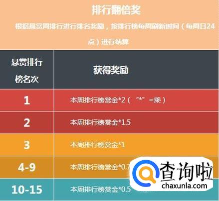 根据每周赏金排行榜进行排名奖励,每周结算一次,见下图↓↓↓↓