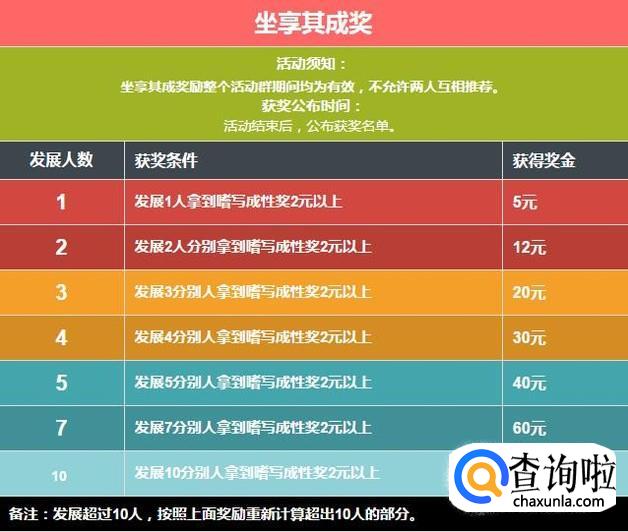 2、坐享其成奖励整个活动群期间均为有效,不允许两人互相推荐。