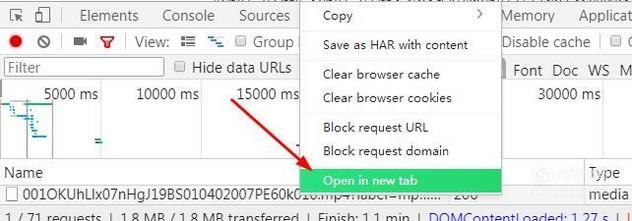 抓取到视频地址后我们点击右键选择“Open in new tab”新建页面打开,然后点击视频右下角的下载图标后会弹出下载提示,我们点击下载即可。