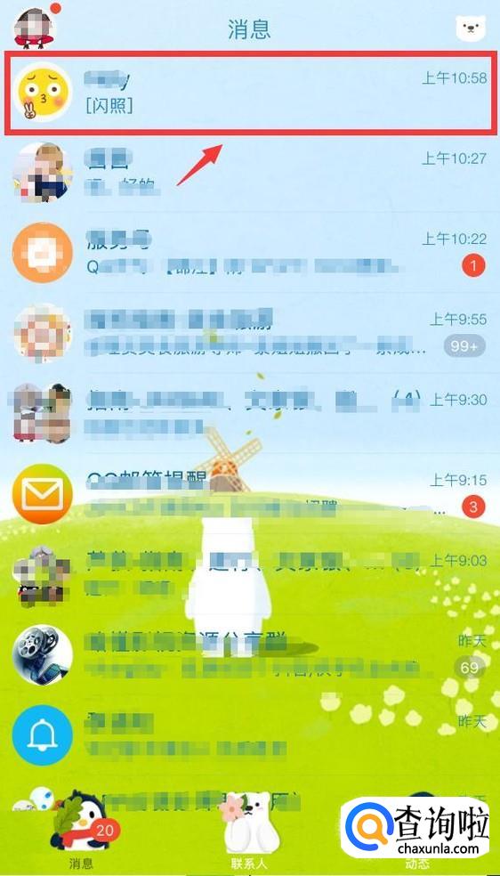 打开手机QQ,选择一个发送闪照的对象,此处以发给QQ好友示例。