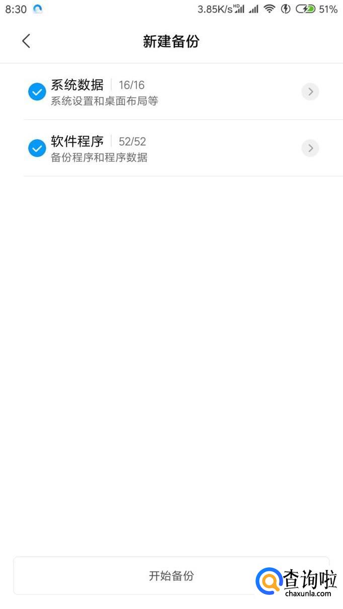 选择想要备份数据的应用和设置选项,点击“立即备份”就可以开始备份了,这个过程大概10多分钟。
