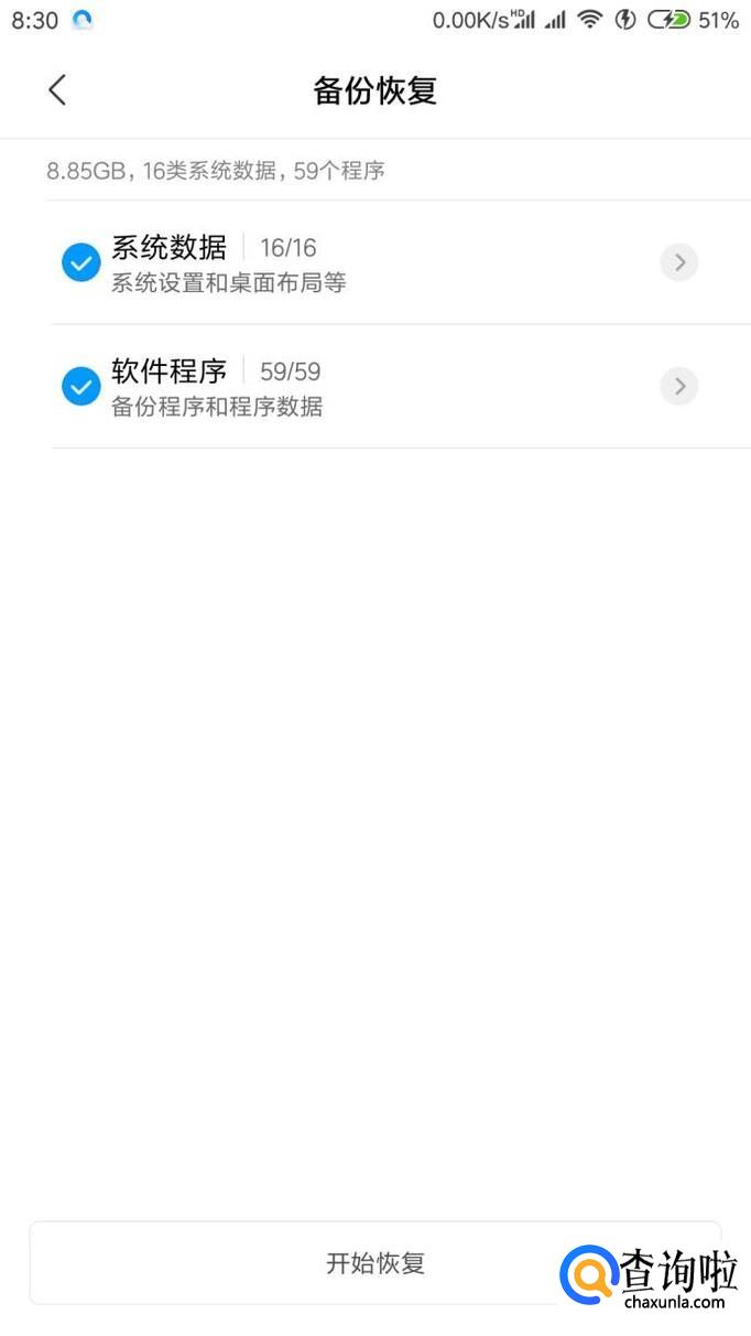 接下来就可以开始刷机了,备份数据是不会被清除的,再次开机的时候点击刚刚建立的备份,选定之后点击“开始恢复”,就能找回之前刷机清除的数据了,差不多要半个小时的时间。