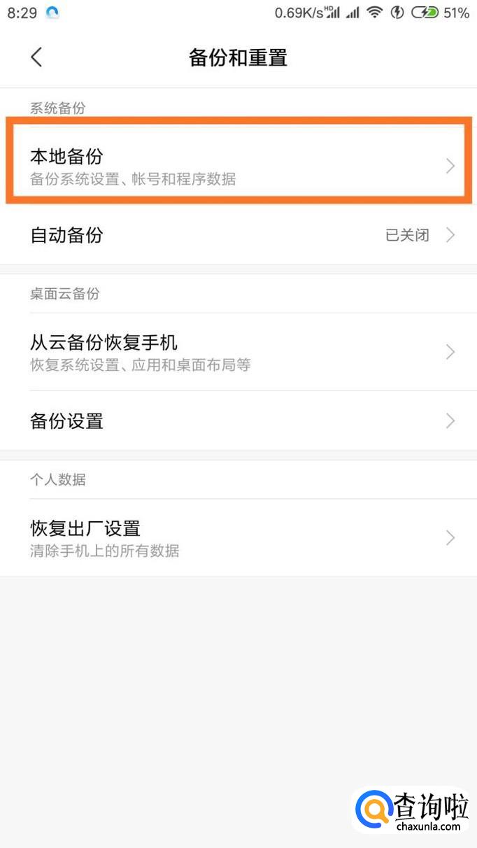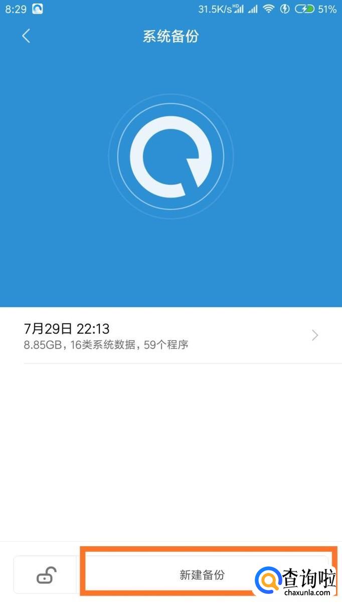 在这个菜单里面点击“本地备份”,点击下方的“新建备份”,就可以进入备份页面了。