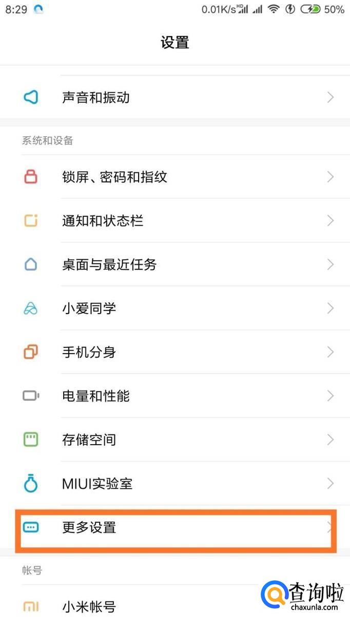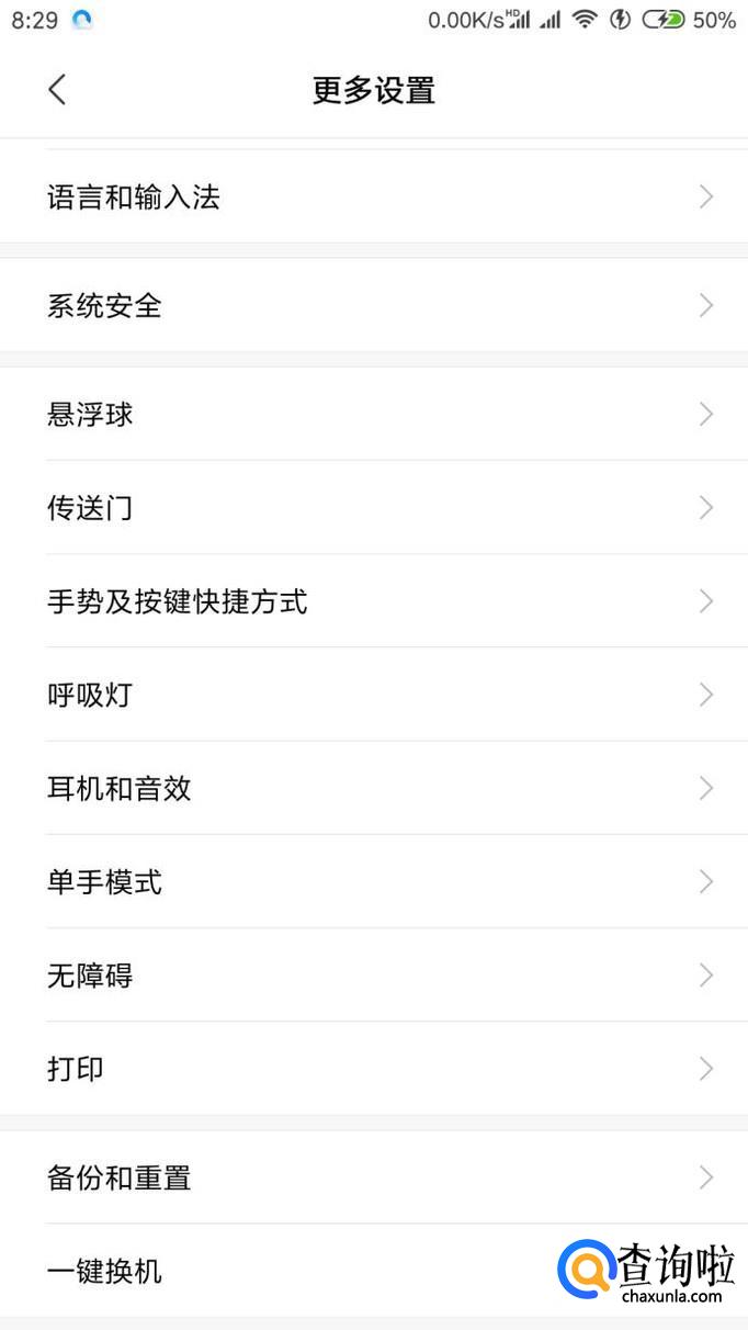 首先在刷机之前打开手机的设置,然后点击“更多设置”,拉到最底部找到“备份和重置”。