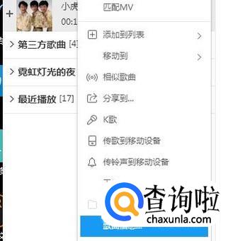 然后右击正在播放的歌曲并点击歌曲信息,如下图所示。