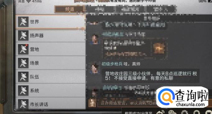 在游戏界面中,在下面可以看到世界喊话,点开信息页面即可。