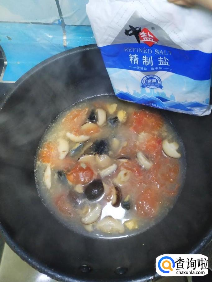 盖上锅盖,大约煮五分钟左右,加入适量盐和鸡精调味。