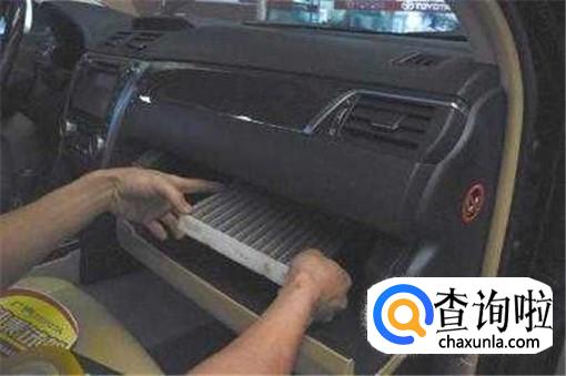 然后我们将汽车关闭,再到副驾驶位置上打开汽车空调外壳,只要对准卡口,就可以将旧的空调滤芯取下。