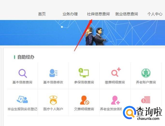 登录成功后我们进入后台页面,我们在导航栏目找到“社保信息查询”点击进入。
