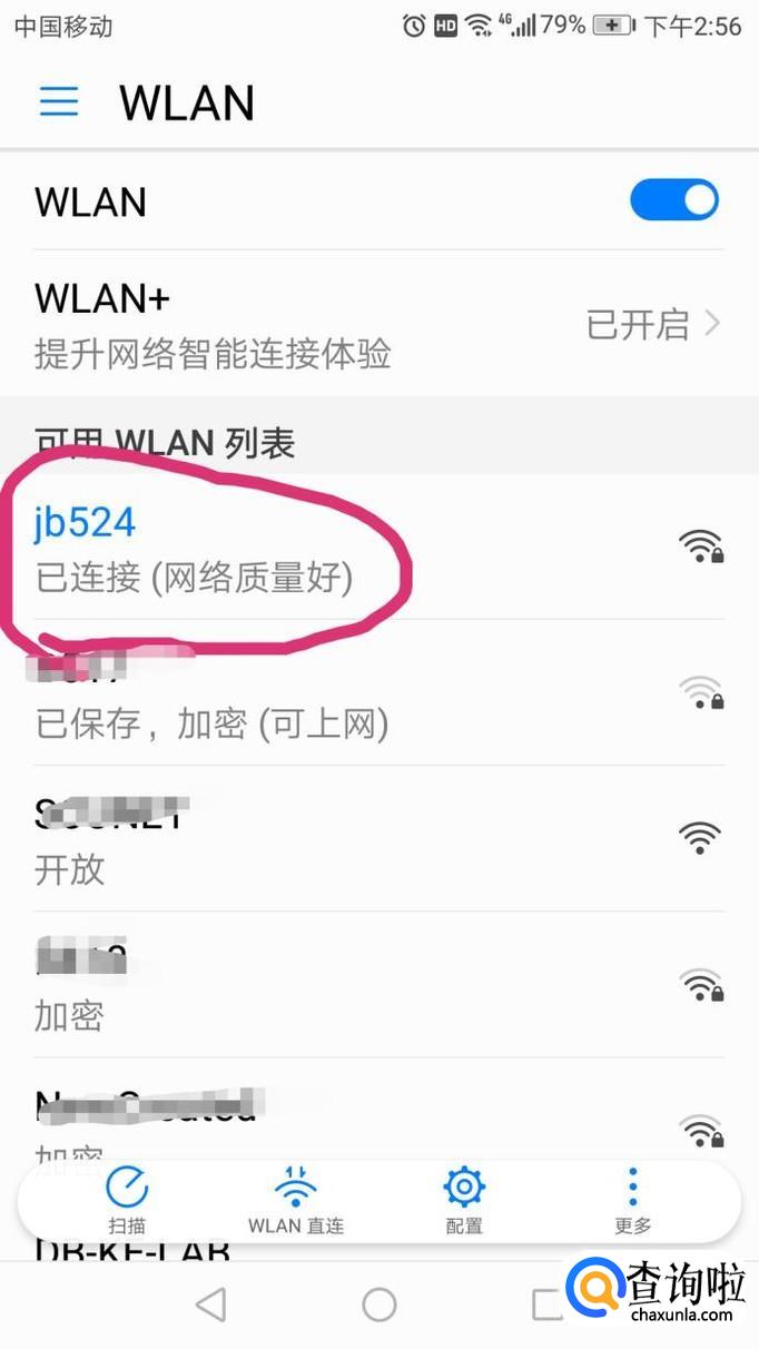 把WLAN开关打开,点击连接jb524,过一会可以看到jb524wifi已经连接成功了。这样手机就连接上了wifi。