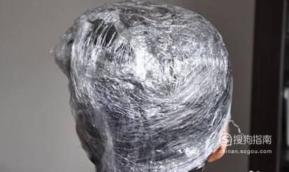 没有理发店专业的道具,但是头发包上保鲜膜,能够让头发更上色。