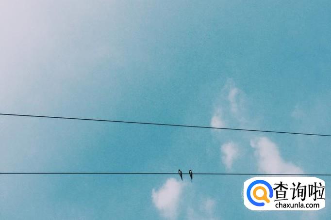 天空的图片,以蓝天为背景,几朵白云作为点缀,这样的构图太美,两根电线上站着两只小鸟,整幅图片给人恬静,温馨的感觉。