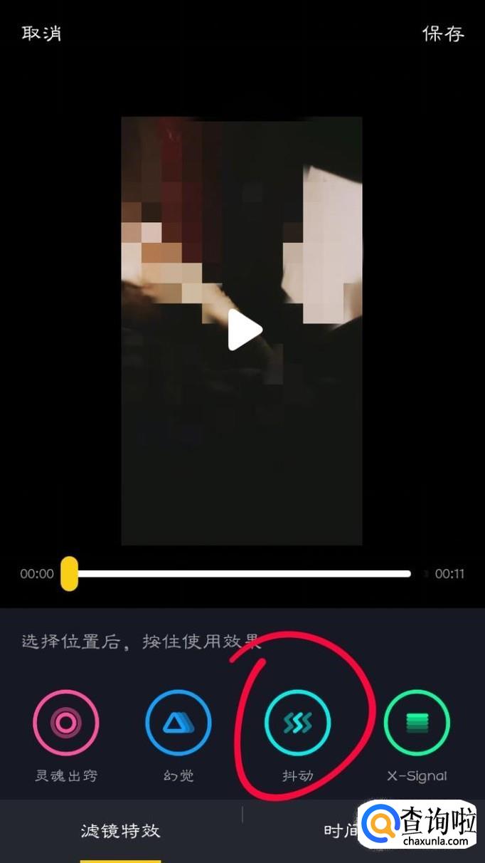 之后会看到一个抖动的特效,使用这个特效就使视频有了抖动的效果。