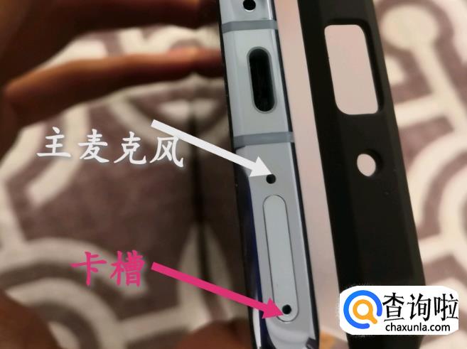好了,相信大家对手机孔位和按键有了一定的了解了,接下来要重点提醒大家卡槽和主麦克风的位置,如下图所示,白色箭头标注的是手机的主麦克风,而粉色箭头标注的才是卡槽,(注意:P30 Pro的卡槽是在机身底部的)一定要看好,千万不要插错!!!